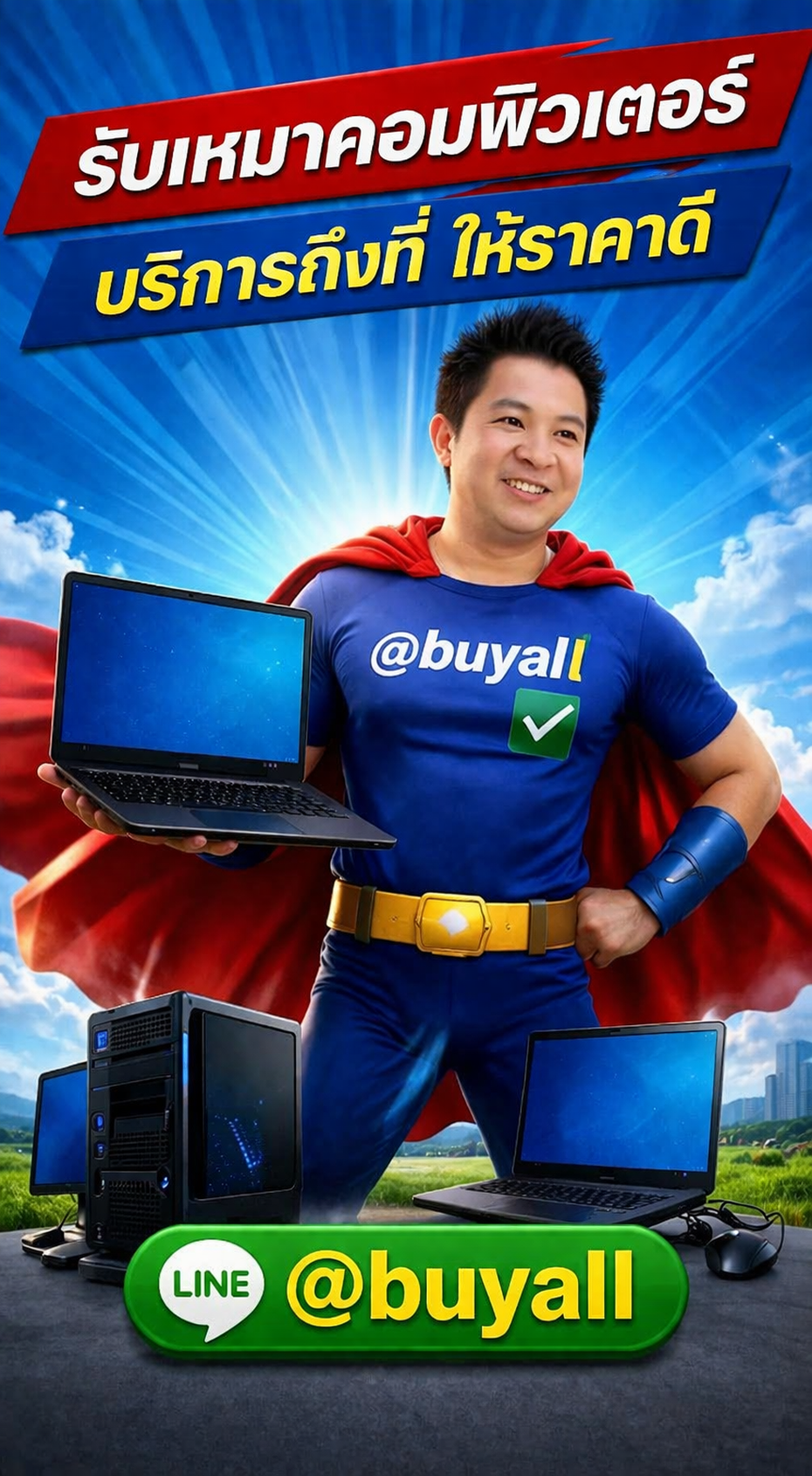 พร้อมขายแล้ว? ส่งรูปและรายละเอียดคอมพิวเตอร์มาที่ LINE @buyall ได้ทันที ทีมงานจะช่วยประเมินราคารับเหมาและนัดหมายตามความสะดวก